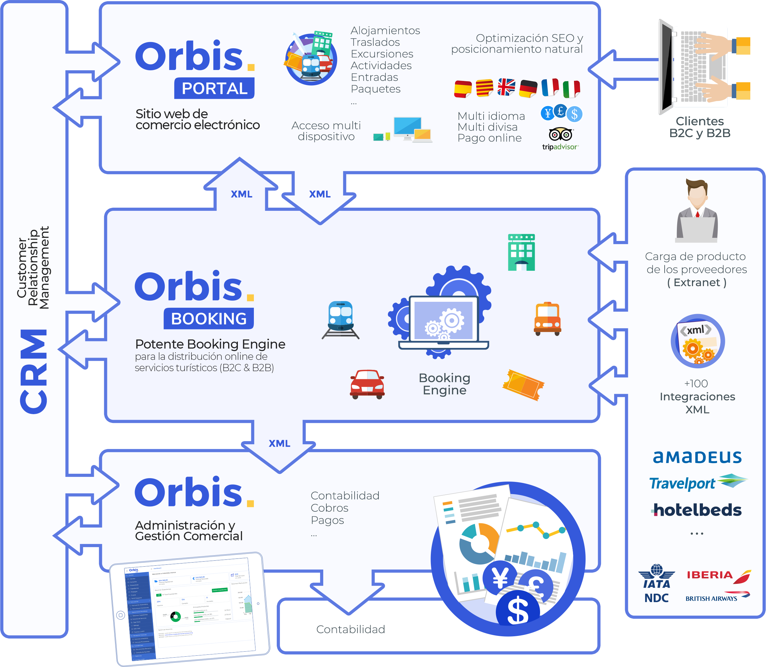 Orbis WEB, mantiene las características principales de nuestras más avanzadas y potentes herramientas de gestión de agencias de viajes, ofreciéndole la versión más completa de Orbis.